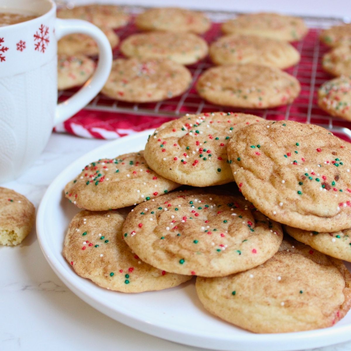 Whenever I’m baking Christmas cookies, I always include these Eggnog Snickerdoodle Cookies along with a batch of Biscochito cookies, Coconut Pecan Oatmeal Cookies, and my classic Rolled Sugar Cookies that don’t need to chill.